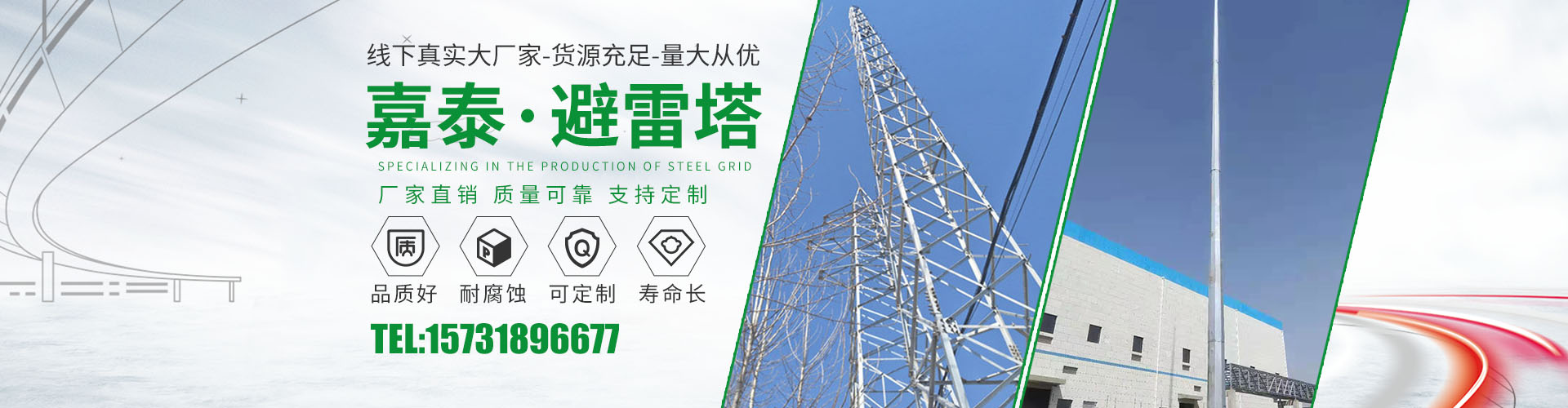 衡水嘉泰鋼結(jié)構(gòu)有限公司位于鐵塔制造之鄉(xiāng)-衡水市景縣廣川經(jīng)濟(jì)開發(fā)區(qū),石德、京九鐵路交匯處,距北京、天津、石家莊、濟(jì)南均在2小 時(shí)交通圈內(nèi),交通便利。公司主要產(chǎn)品有:避雷塔、監(jiān)控塔、瞭望塔、消防訓(xùn)練塔、電力架構(gòu)、樓頂工藝塔、廣播電視塔、煙囪塔、測(cè)風(fēng)塔 、電力塔、單管塔、雷達(dá)塔、仿生樹塔、氣象觀測(cè)塔、路燈桿,一體化基站、ETC龍門架等,是一家集設(shè)計(jì),生產(chǎn),運(yùn)輸,安裝,維護(hù)為一體的廠家。主要服務(wù)于鐵塔公司、通信三大運(yùn)營(yíng)商、國(guó)防通訊,鐵路及森 ......